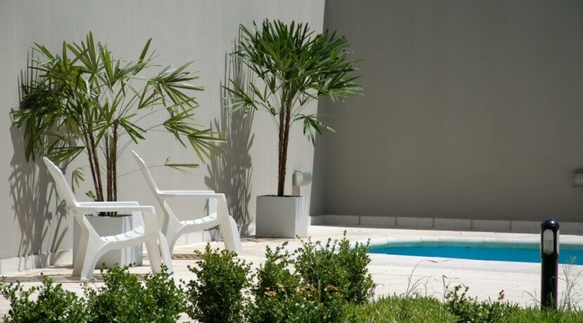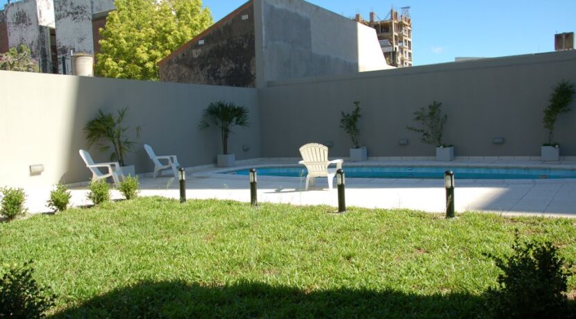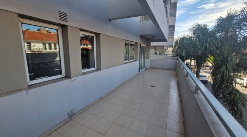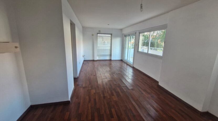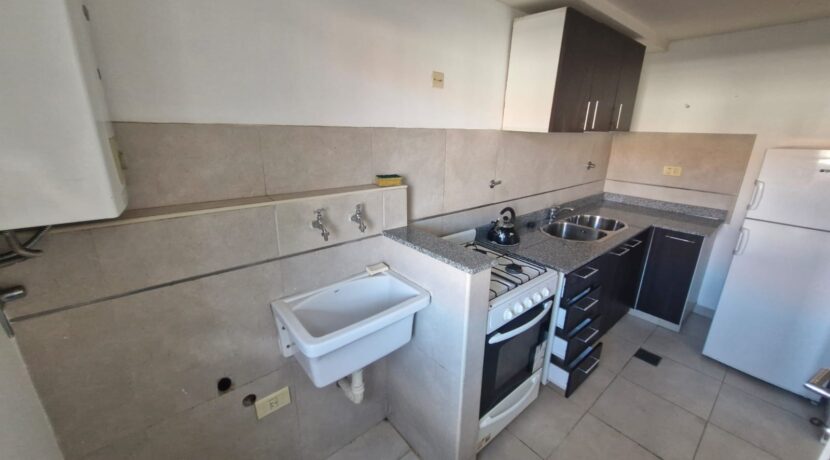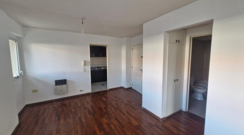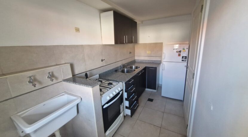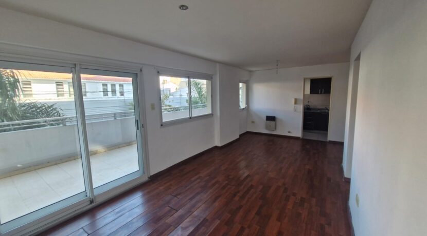 Departamento en 1er piso Living comedor con piso flotante Cocina sectorizada con artefacto cocina y heladera Dormitorio con aire acondicionado split y placard Distribuidor con placard empotrado Baño completo Amplio balcón / terraza Cochera cubierta en el edificio Edificio con sum y pileta. Servicio de portería/seguridad las 24hs